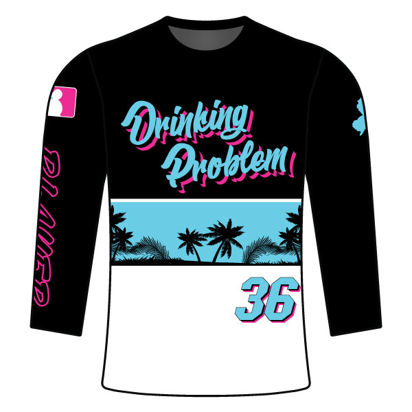 DRINKING PROBLEM Softball Sublimated Long Sleeve Jersey White-Black
