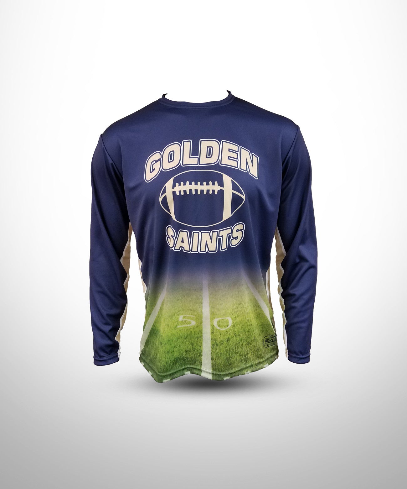 GOLDEN SAINTS Football Sublimated Crew Neck Long Sleeve Jersey NV FLD